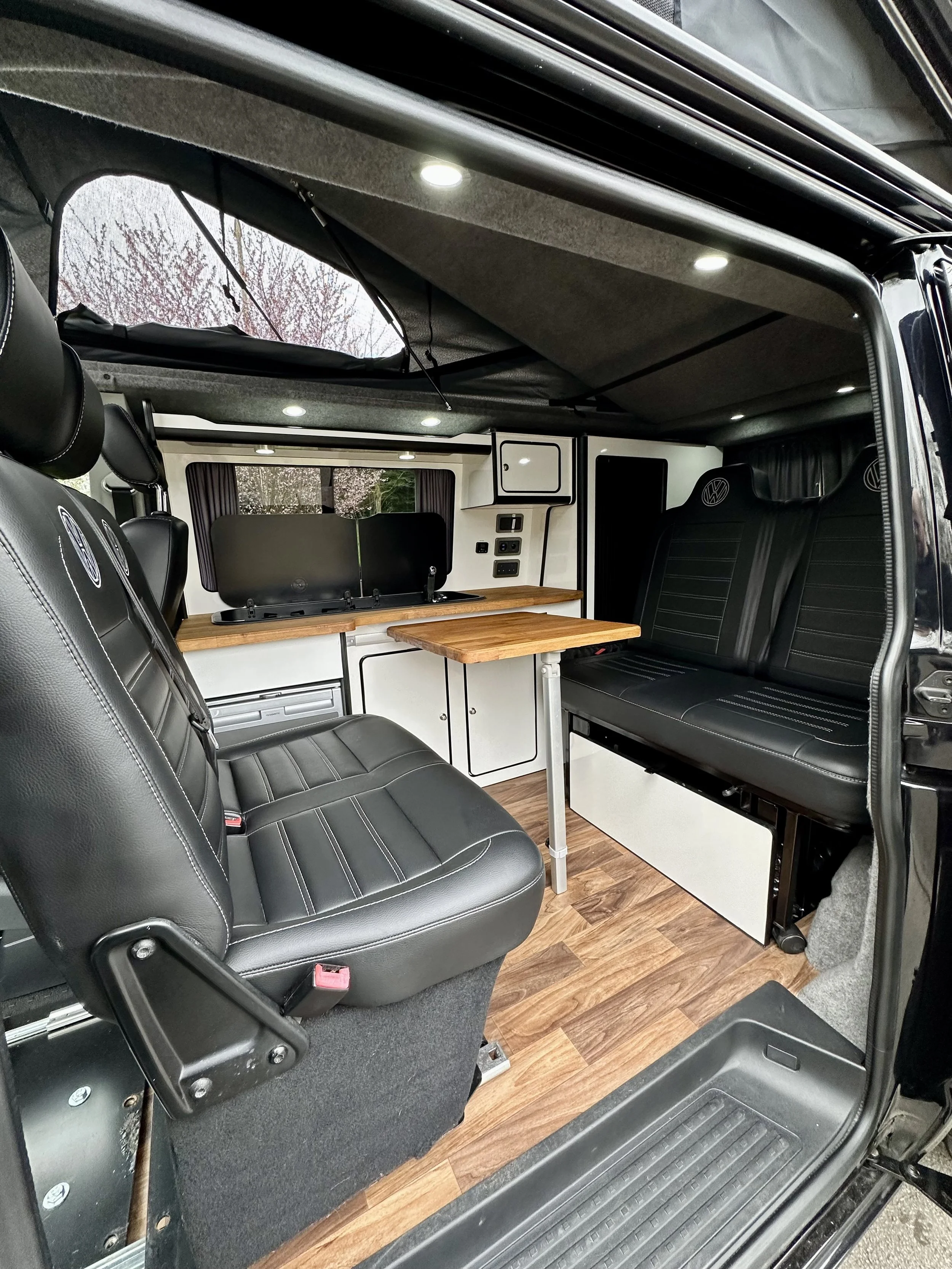 Gary is our favourite campervan. He is a 2020 Volkswagen Transporter T30 Startline TDI. A 5-speed manual drive with a modern cockpit, including Apple CarPlay, makes it a very comfortable drive. Sleeping up to 4 passengers and the option of an inflatable awning leave plenty of room for the whole family. Converted to contain full camping facilities, we’re confident you’ll be more than impressed. Images and a further description are available below.